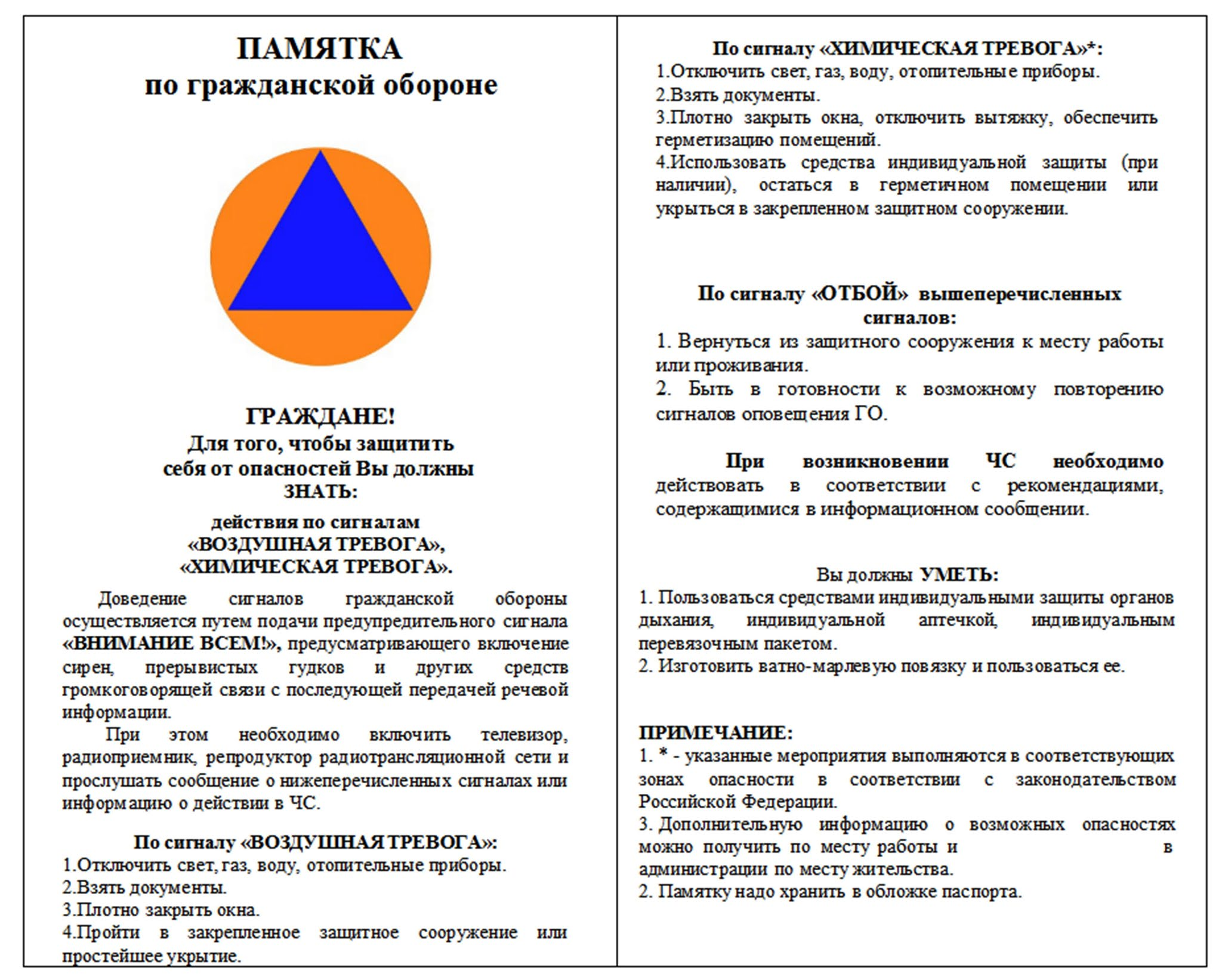 Памятки населению по Гражданской Обороне | Администрация муниципального округа город Партизанск Приморского края